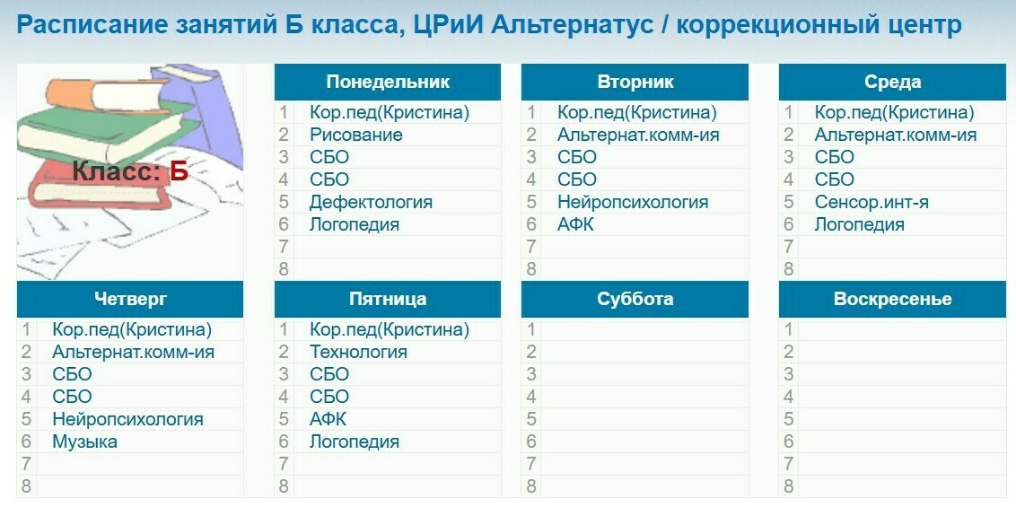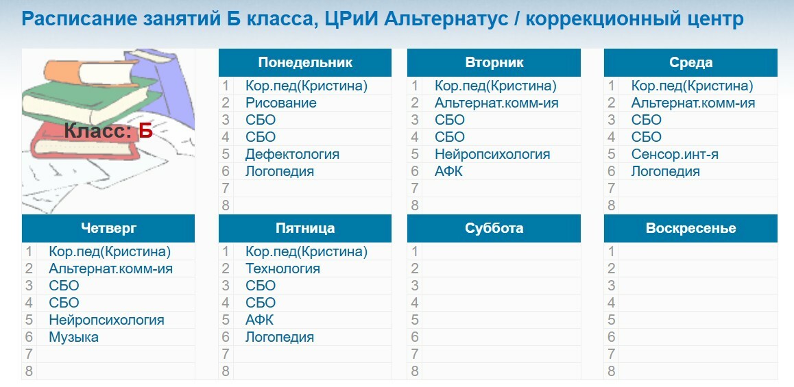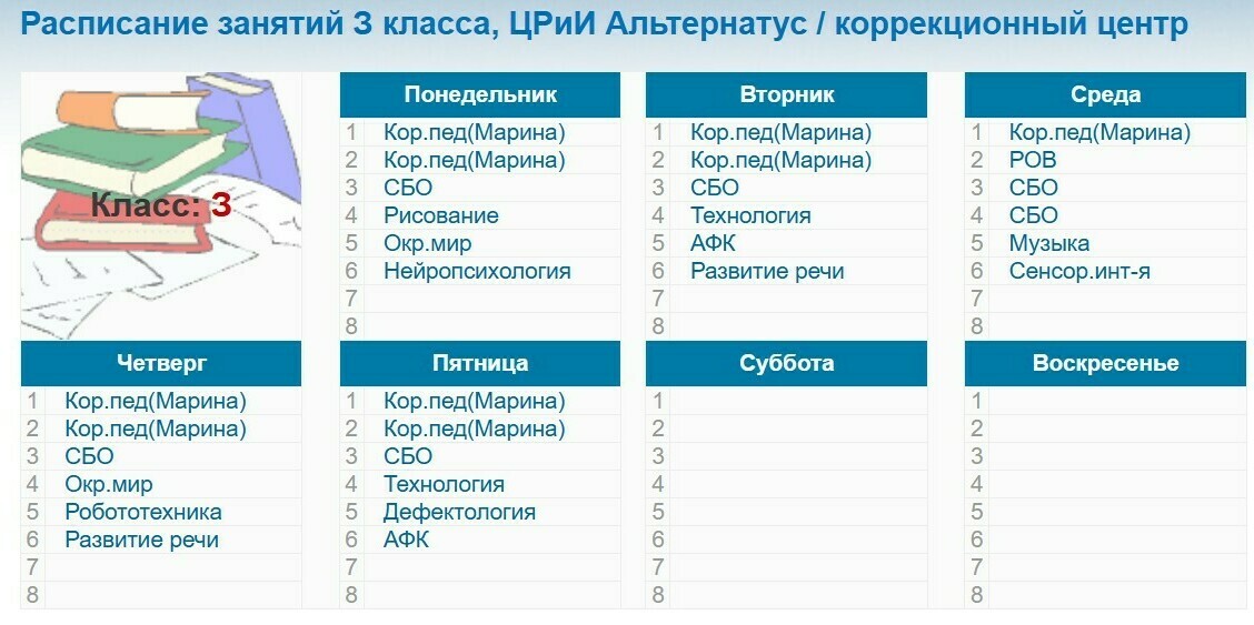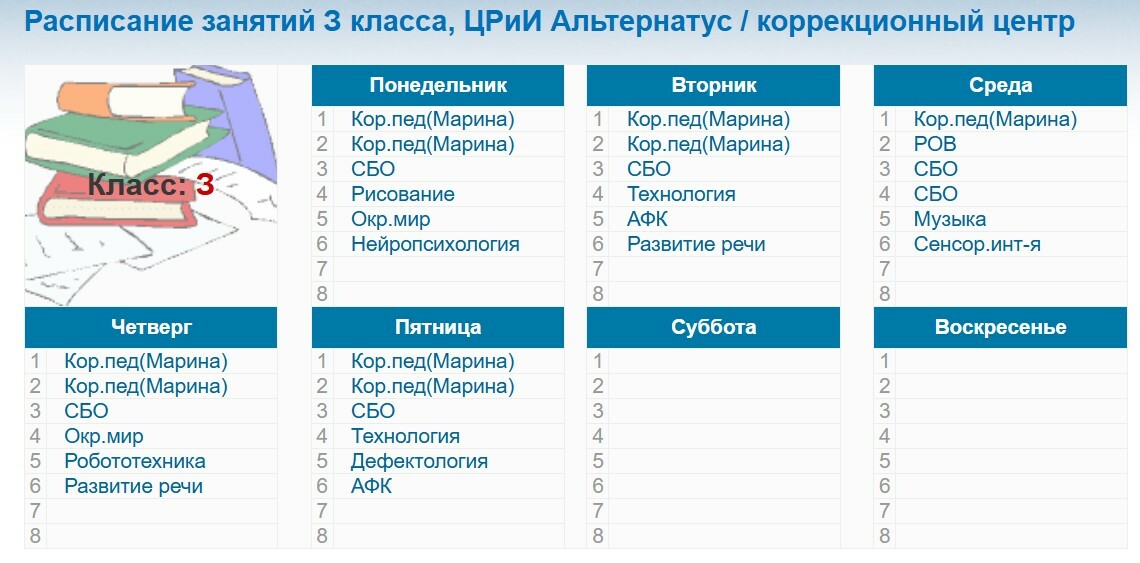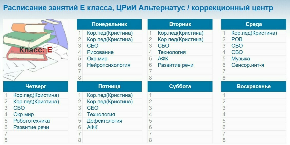 🔻Расписание классов составляется на основе программы обучения или программы развития класса, примерное расписание, смотрите в карусели.